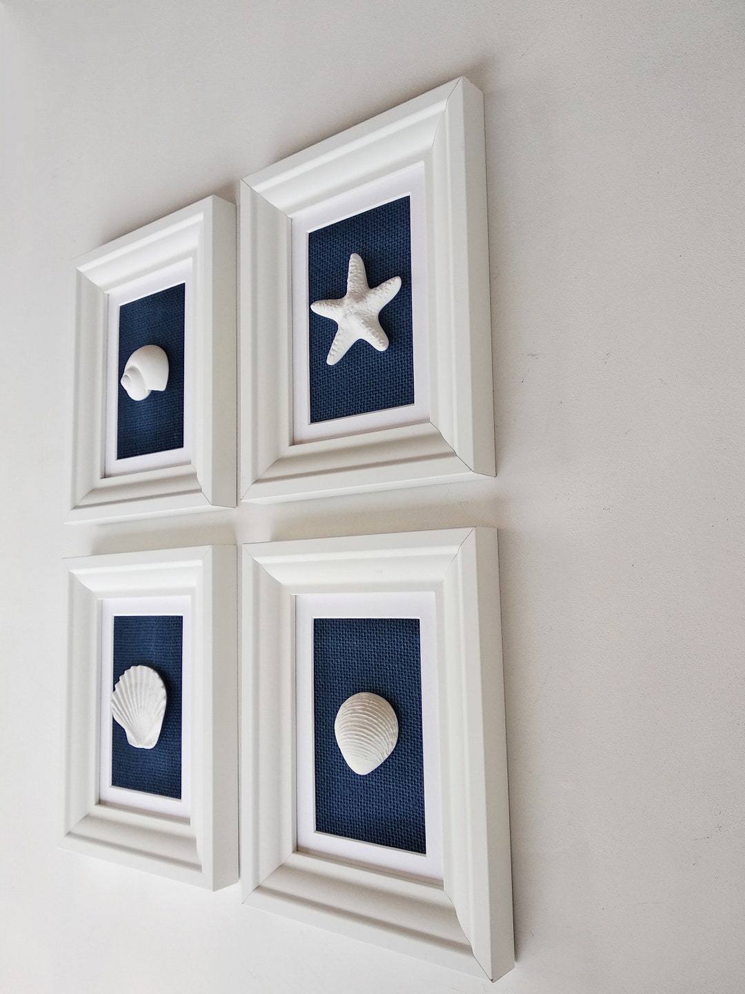 Navy Blue Beach Wall Art Framed Original Seashell Paintings Etsy