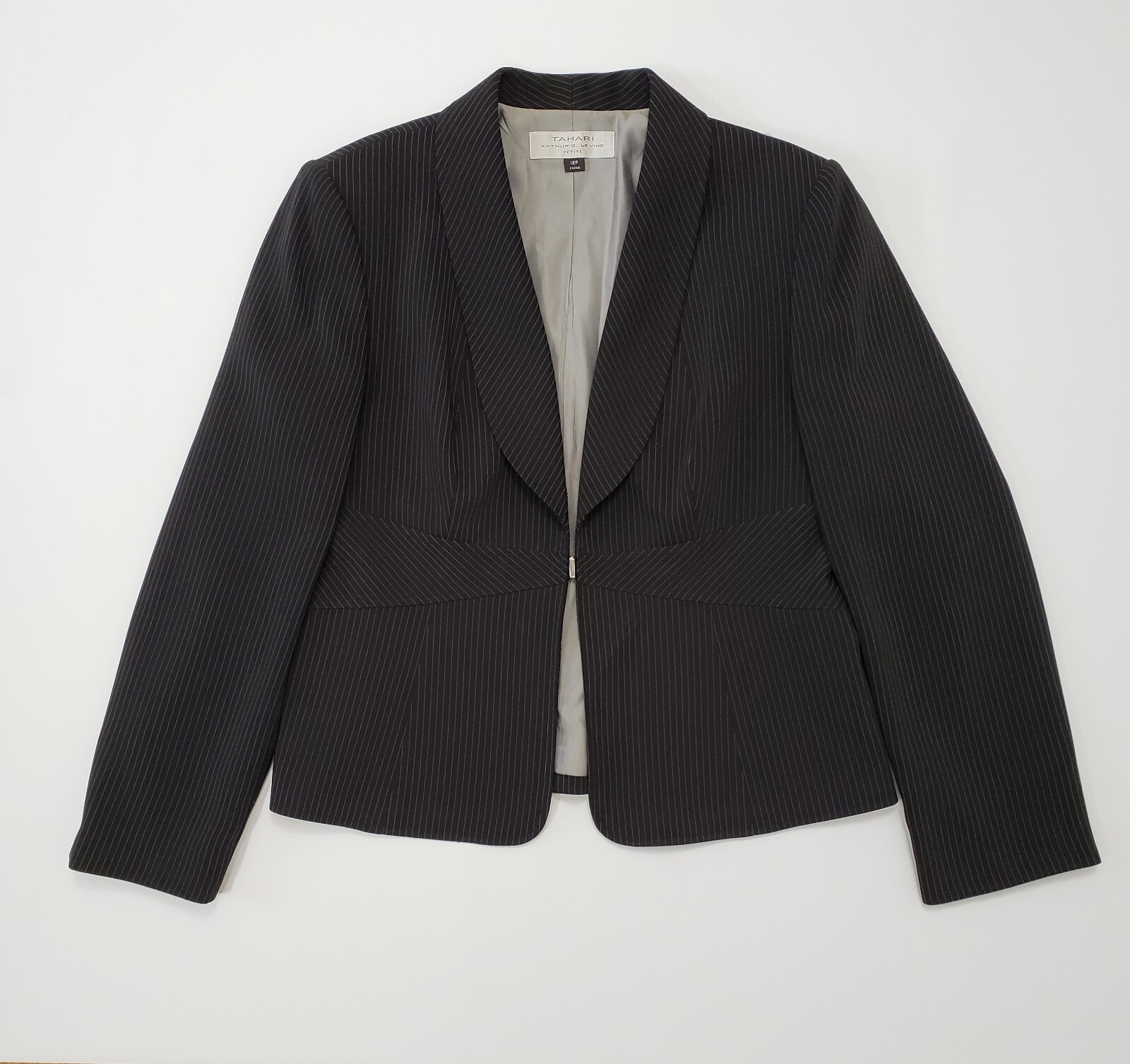 TAHARI Pinstripe Blazer Size 12P Womens Black Pinstripe Suit Jacket