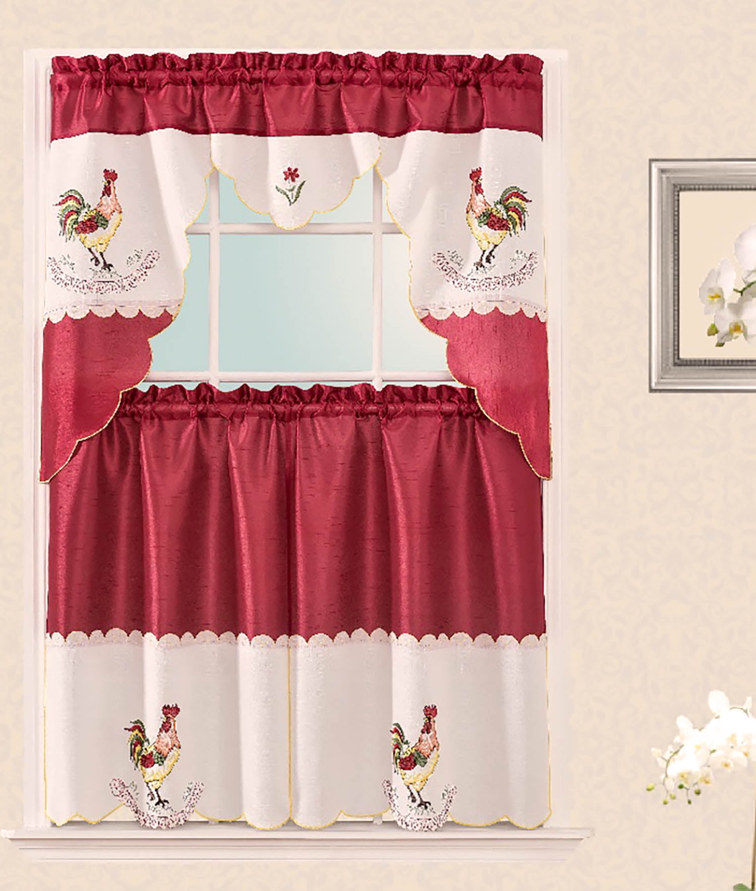 Heather Rooster Design Kitchen Curtain with Swag and Tier Set 36 inch