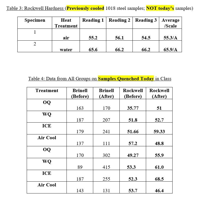 Solved Table 1 Rockwell Hardness (your 1018 steel samples)