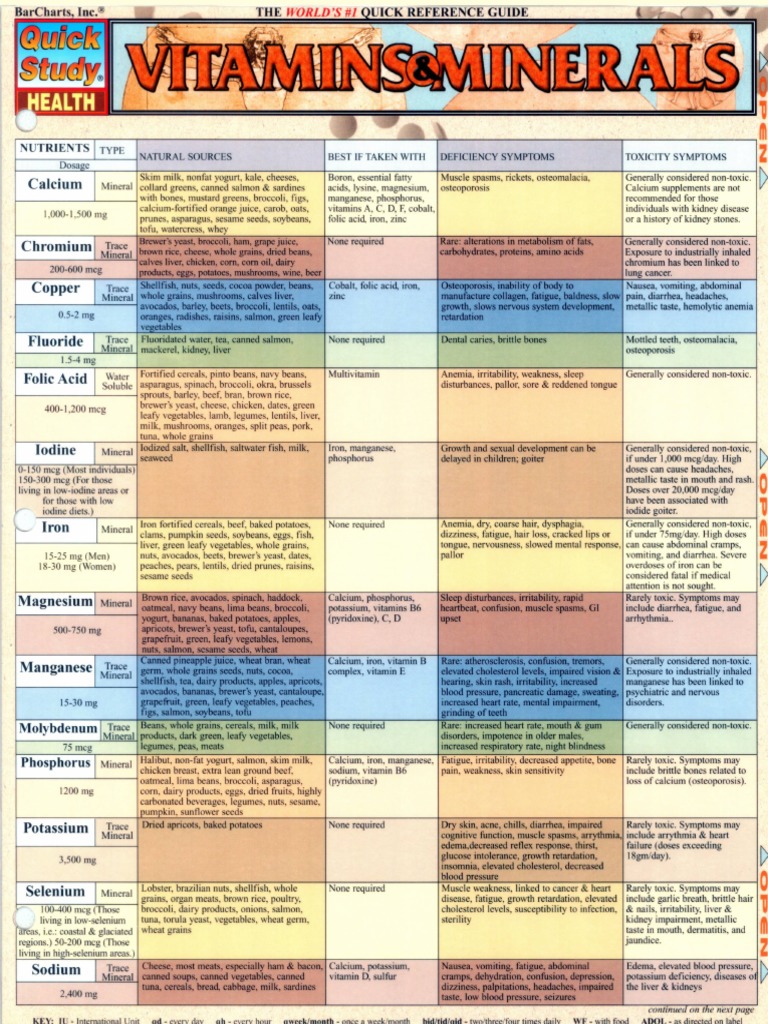 Printable Daily Intake Of Vitamins And Minerals Chart