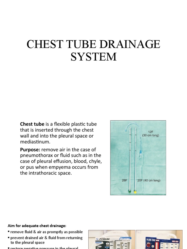 CHESTDRAINING METHODS Medical knowledge, Chest tube, Critical care Chest Tube Drainage System Knocked Over This unit has been knocked over. Maintain ctt and drainage system integrity. Ensure the chest tube drainage system is below the level of the insertion site and upright to prevent backflow of fluid from the tubing into the chest cavity. If drainage suddenly stops in the first 24 hours after chest tube insertion, the tubing may be clogged by a. Chest Tube Drainage System Knocked Over.