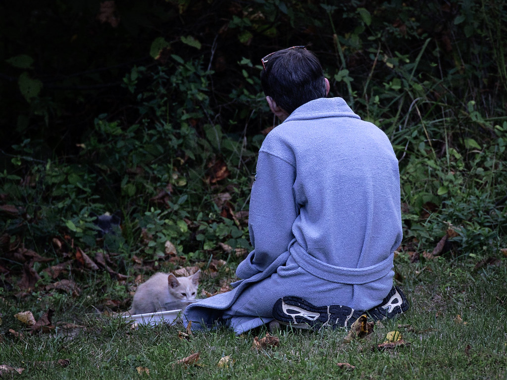 The Cat Whisperer at work The blue bathrobe is an importan… Flickr