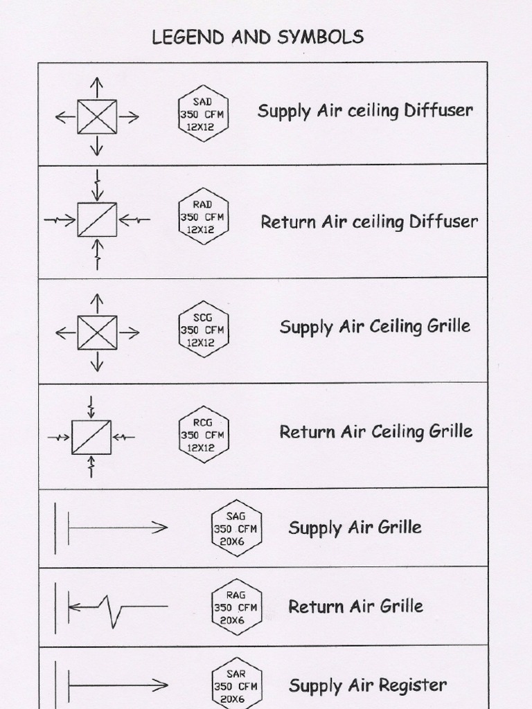 Each mechanical engineering office uses their own set of hvac symbols; Refer to the symbol legend sheet for special symbols used in a particular set. However, the symbols below are fairly common across most mechanical drawings. Depicts the coil through which refrigerant flows to cool the air. The symbol for duct internal insulation or duct liner is a pair of dotted lines on the inside of the duct. Some common symbols used in all hvac system plans include hvac ductwork, compressor and supply air fans. Represents the heating element, such as a furnace or boiler, used to warm the air. Understanding the function of each hvac system component. Make sure to refer to the hvac symbols legend drawings (usually among the first couple of drawings) in order to get an idea of all the hvac symbols and abbreviations used in the.