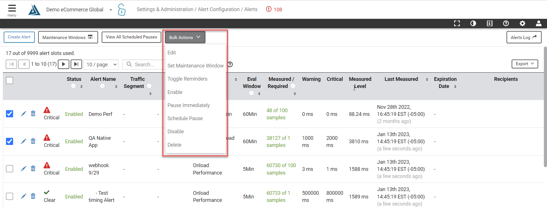 How do I edit multiple of my alerts at the same time? Blue Triangle Help Center