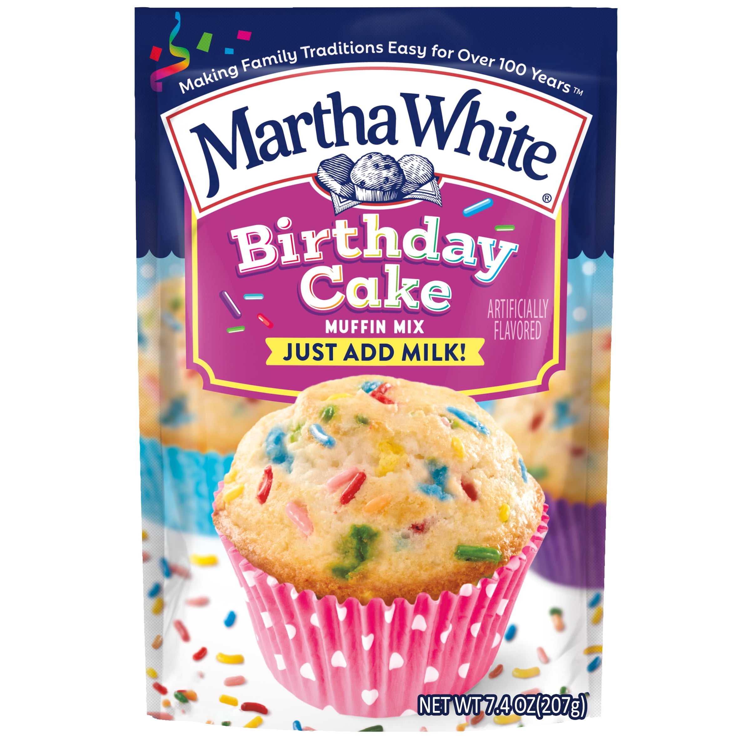 Martha White Birthday Cake Muffin Mix, 7.4 oz Bag