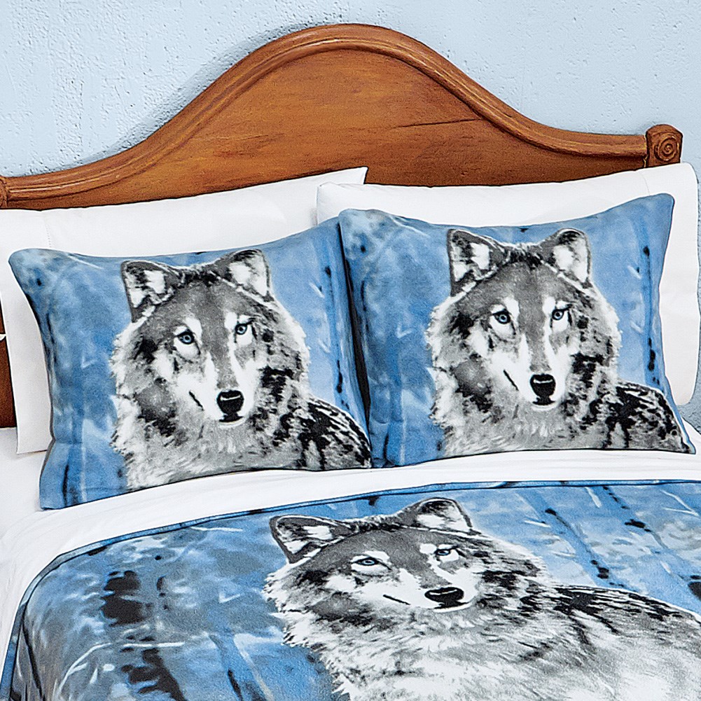 Winter Wolf Fleece Pillow Sham Set Collections Etc.