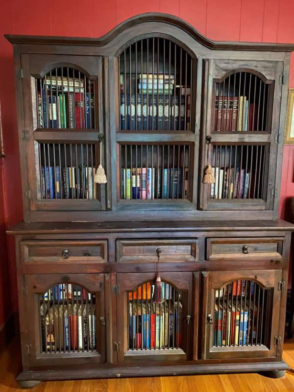 SOLID DARK WOOD BUFFET/HUTCH OR BOOKCASE WITH WOOD SPINDLES Hutches