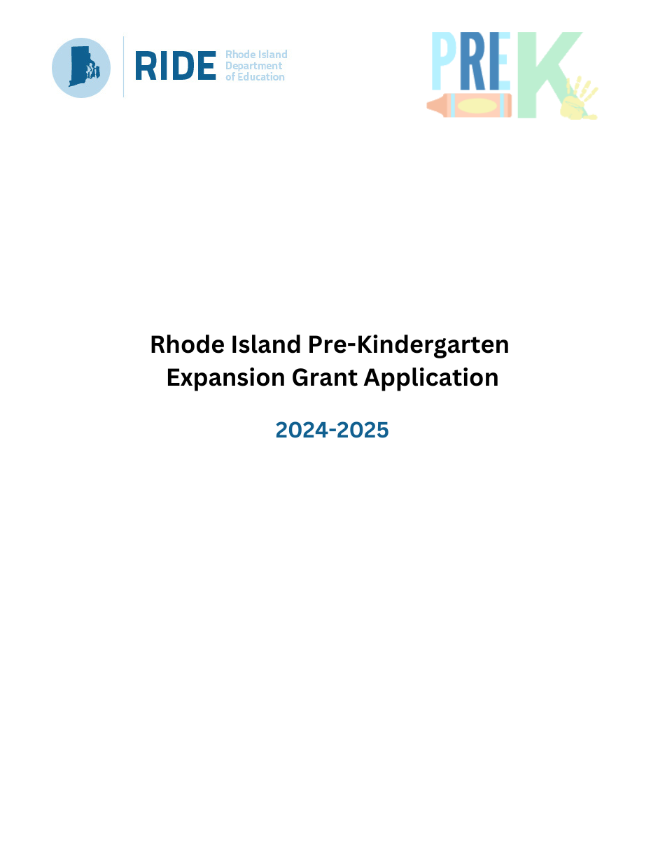 2025 Rhode Island Rhode Island Prekindergarten Expansion Grant Application Fill Out, Sign