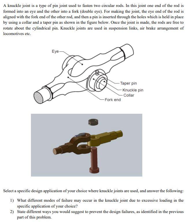 Solved A knuckle joint is a type of pin joint used to fasten