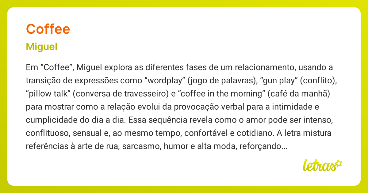 Significado da música COFFEE (Miguel) LETRAS.MUS.BR