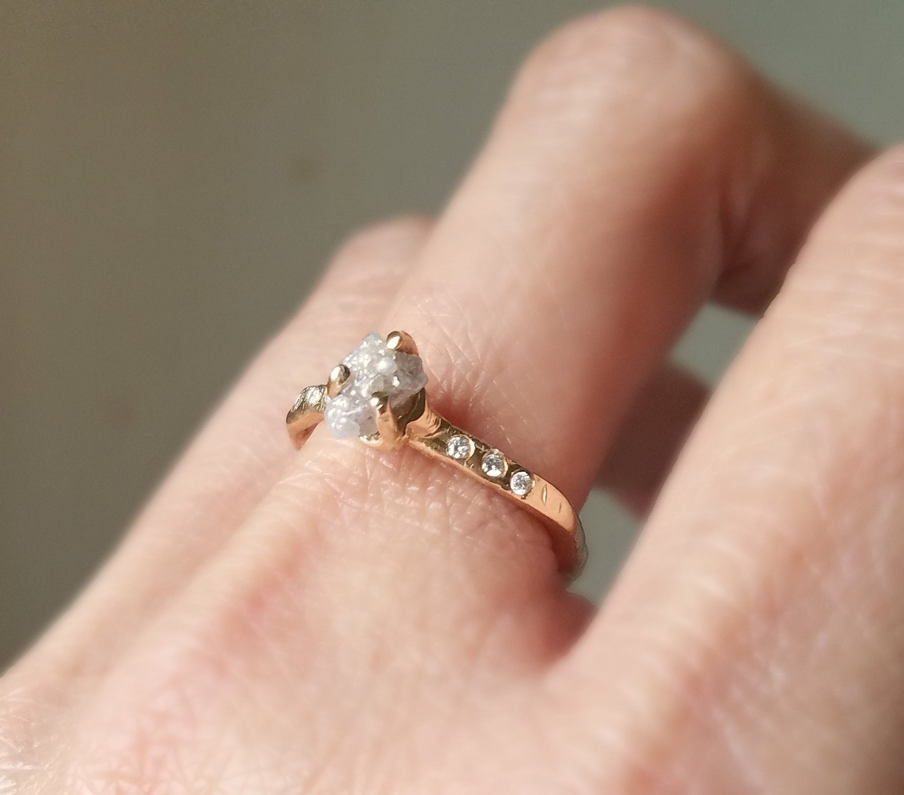 Custom raw diamond rose gold multi stone engagement ring rough gold