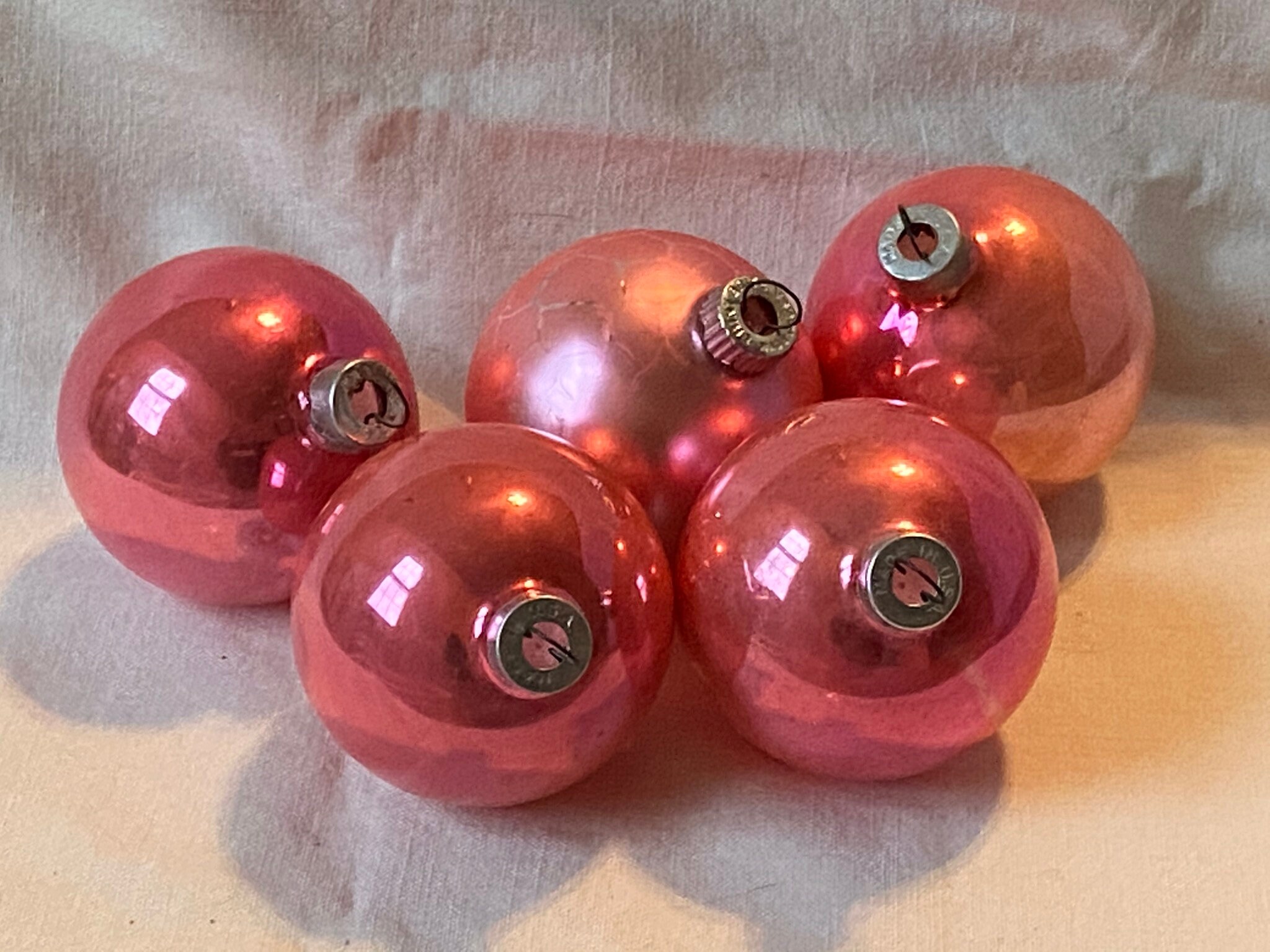 Vintage Shiny PINK Christmas Tree Ball Round Ornaments Lot Of Etsy