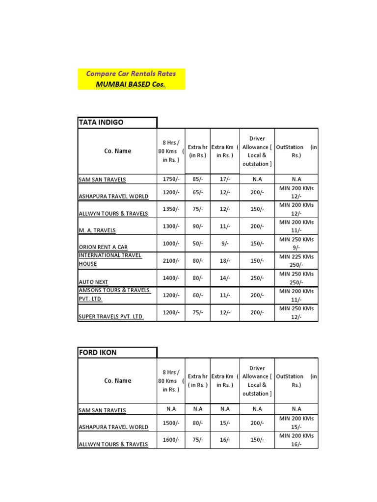 Compare Car Rentals Rates Mumbai Based Cos PDF Transport Economics