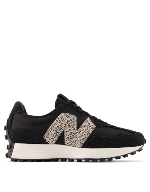 New Balance 327 trainers in black and leopard ASOS