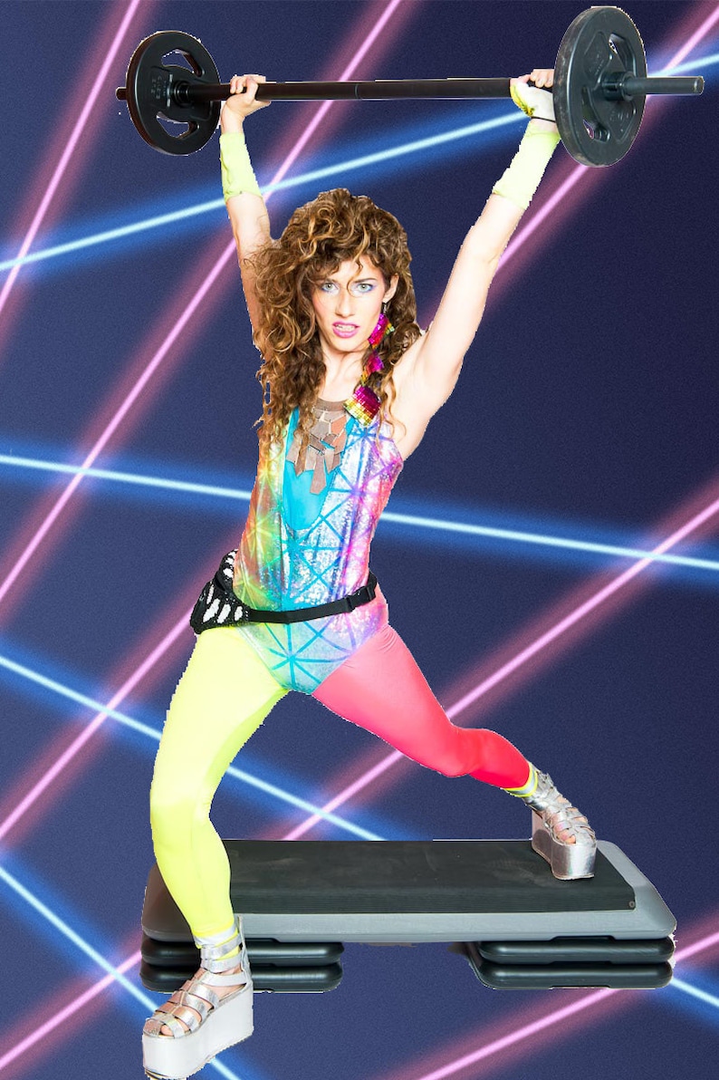 Fun in 80's fitness outfit Leotard Outfit, Spandex Headband, Aerobics Leotard 80S Aerobics Outfit Women’s 80s aerobics girl costume. From spandex to neon colours to the iconic leotard. A leotard is the most important part of a 1980s aerobics outfit. Wear matching tights and a belt for maximum impact. Sizes from 8 to 18. Whether you’re an 80s nostalgia enthusiast or simply looking for a fun and functional workout outfit, the leotard 80s aerobics. Leotard 80S Aerobics Outfit.