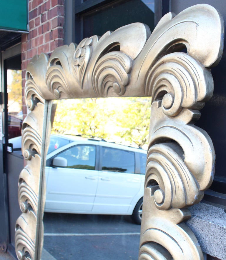 Huge Large Silver Leaf Decorative Frame Mirror For Sale at 1stDibs