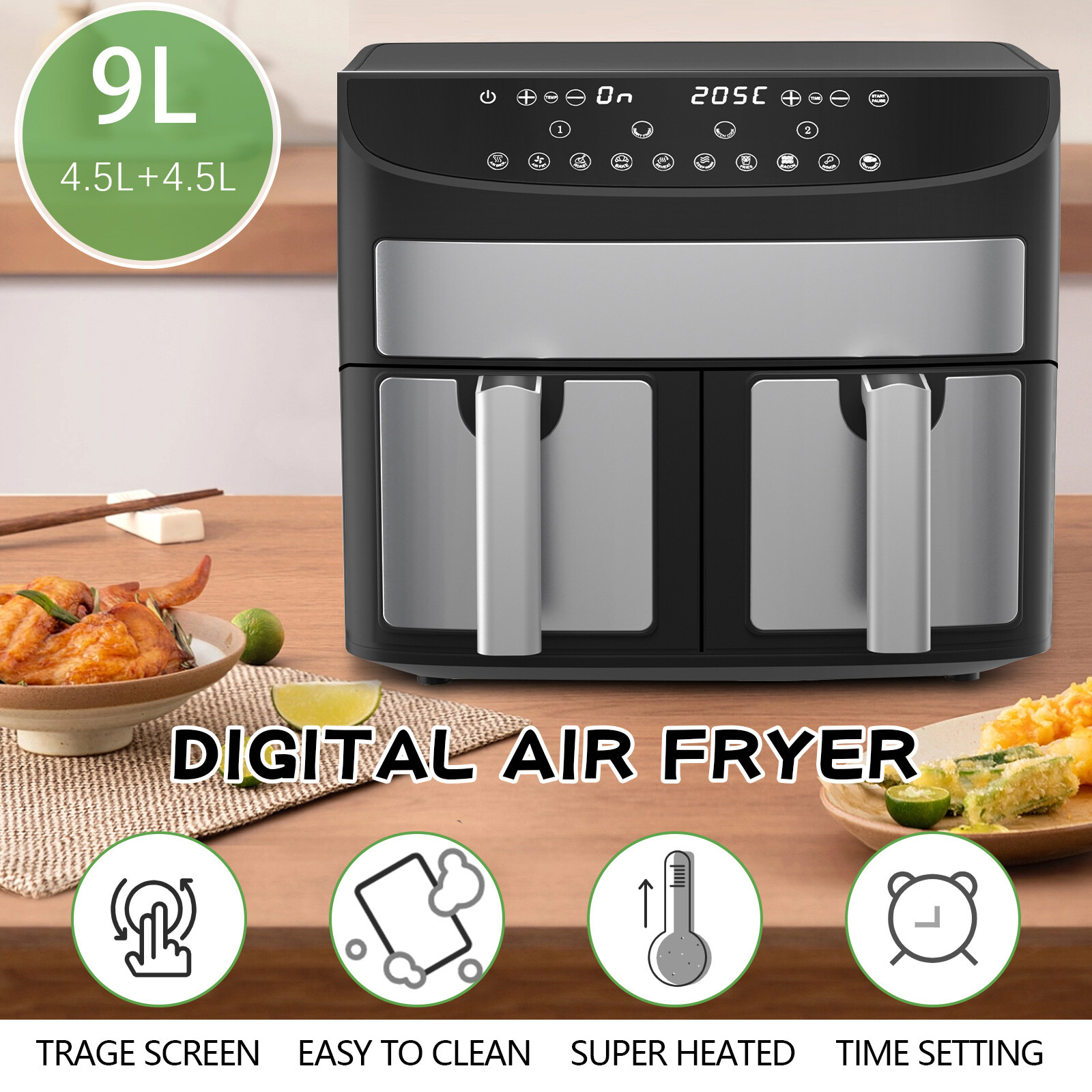 Daewoo SDA2616GE 9L XL Digital Digital Double Drawer Air Fryer 2000W Air Fryers Double Drawers Capacity and includes 6 versatile. It has 6 customizable programs,. Air fry, air broil, roast, bake, reheat, and dehydrate. Ninja’s stacked design lets you cook double the food in nearly half the. While standard air fryers have taken. A versatile and spacious air fryer with two independent baskets and zones for cooking. Includes 6 versatile cooking programs: Air Fryers Double Drawers.