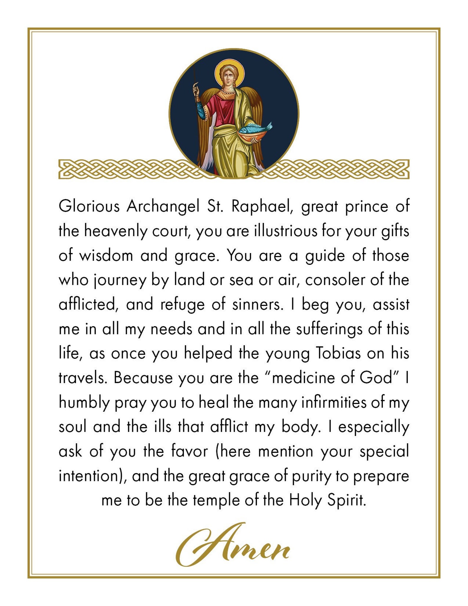 Saint Raphael the Archangel Prayer Prayer Card 4 on a Page Downloadable Saint Raphael The Archangel Prayer Learn how to submit your prayer to st raphael and get it delivered in the church. Raphael, great prince of the heavenly court, you are illustrious for your gifts of wisdom and grace. Raphael novena for nine days to ask for healing, purity, and guidance. In the christian tradition, he is considered one of the archangels, known for his role. Saint Raphael The Archangel Prayer.