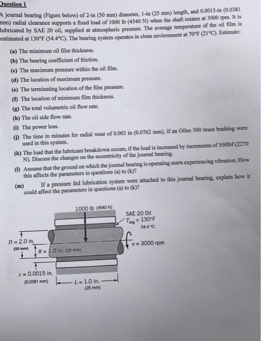 Solved Question 1 A journal bearing (Figure below) of 2in