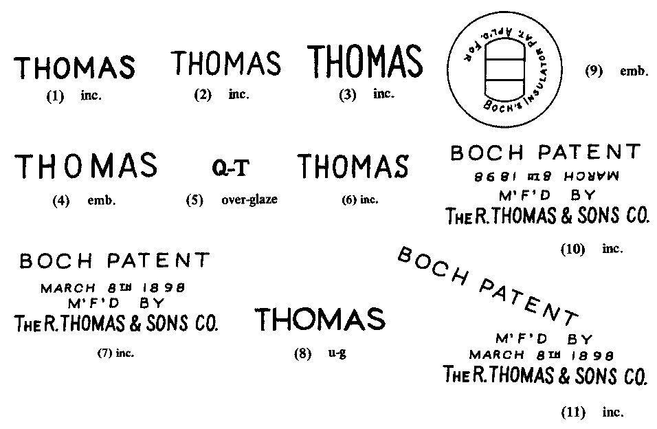 22 Porcelain Insulators. Variations of "Cotton Reel" type shapes. Lots Porcelain Insulator Markings Most porcelain insulators are incuse. Porcelain insulator markings help identify both the manufacturer and the date of manufacture. They typically are found on dry process. Click on any symbol or name for more information Click on this link to view a pdf of all of the fred locke markings f ound on. The original 1952 standard was designated as: Api. Porcelain Insulator Markings.