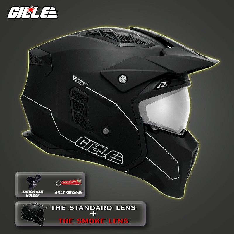 Gille Squadron Solid Helmet Full Face Dual Sports convertible to Half