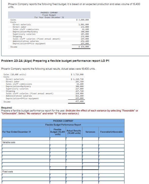 Solved Phoenix Company reports the following fixed budget.