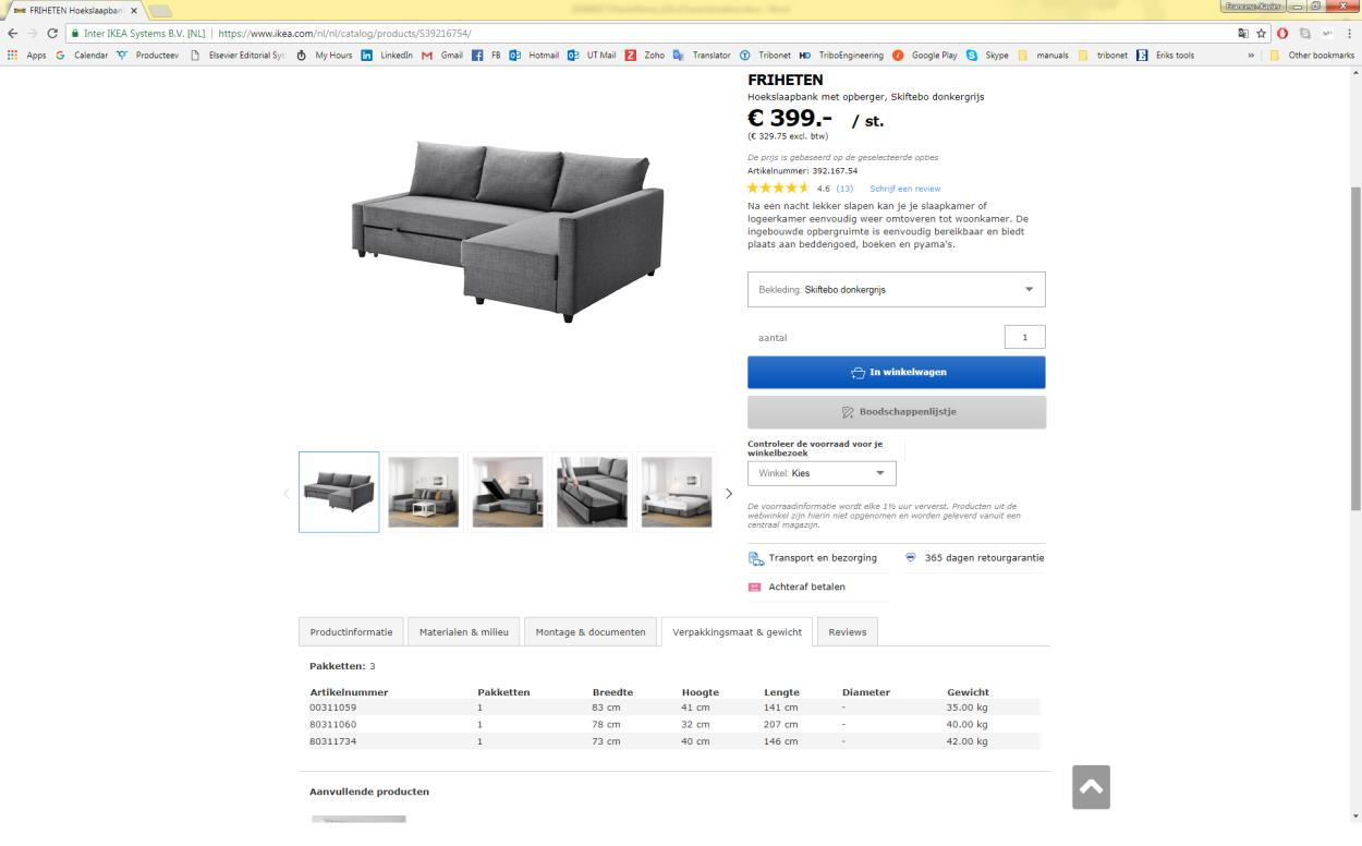 Cost to Deliver a sofa IKEA friheten to Enschede uShip