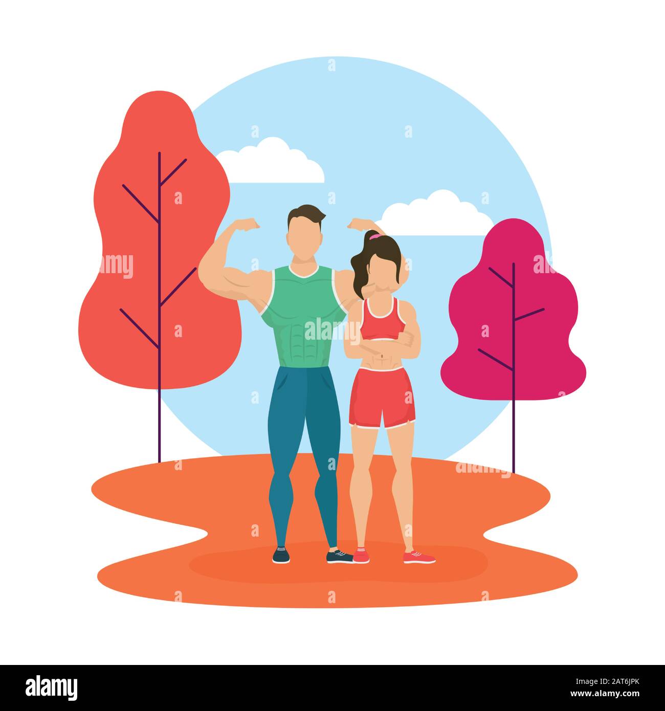 young athletes couple characters in the camp Stock Vector Image & Art