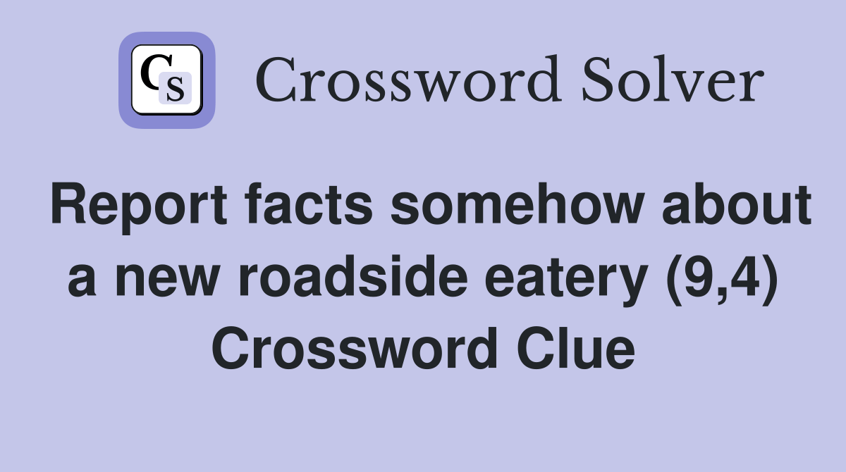 Report facts somehow about a new roadside eatery (9,4) Crossword Clue Answers Crossword Solver