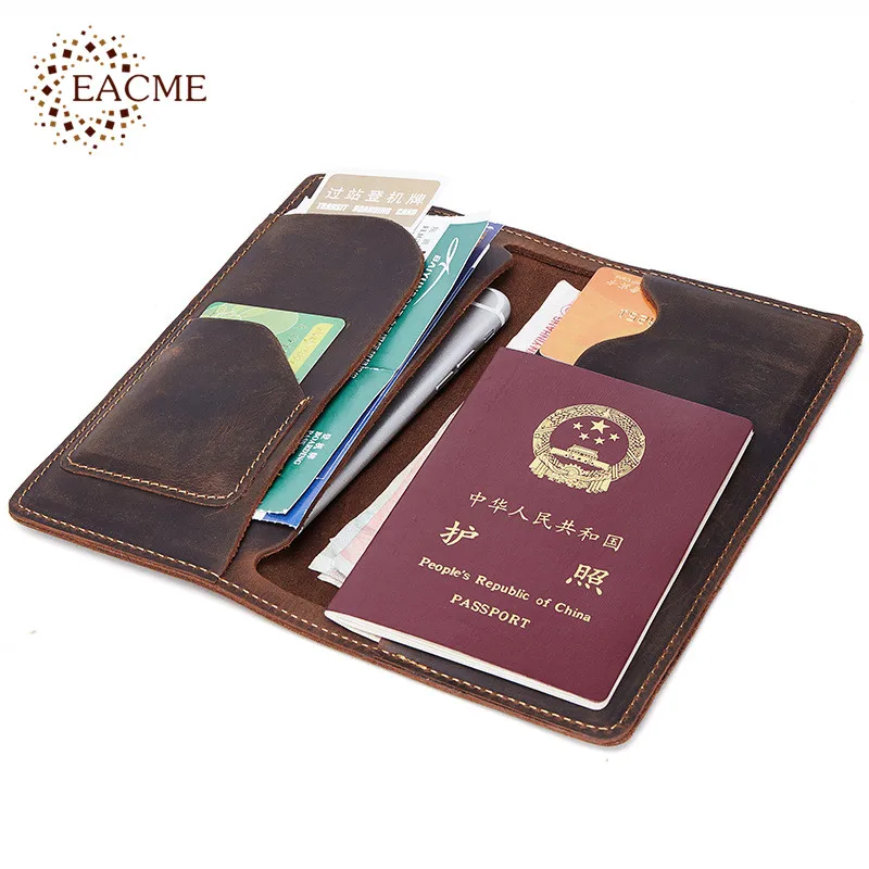 EACME Leather Long Wallet Passport Cover Business Men Cowhide Travel