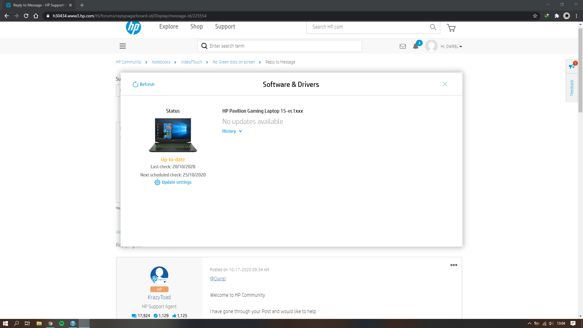 Solved Green dots on screen HP Support Community 7812939