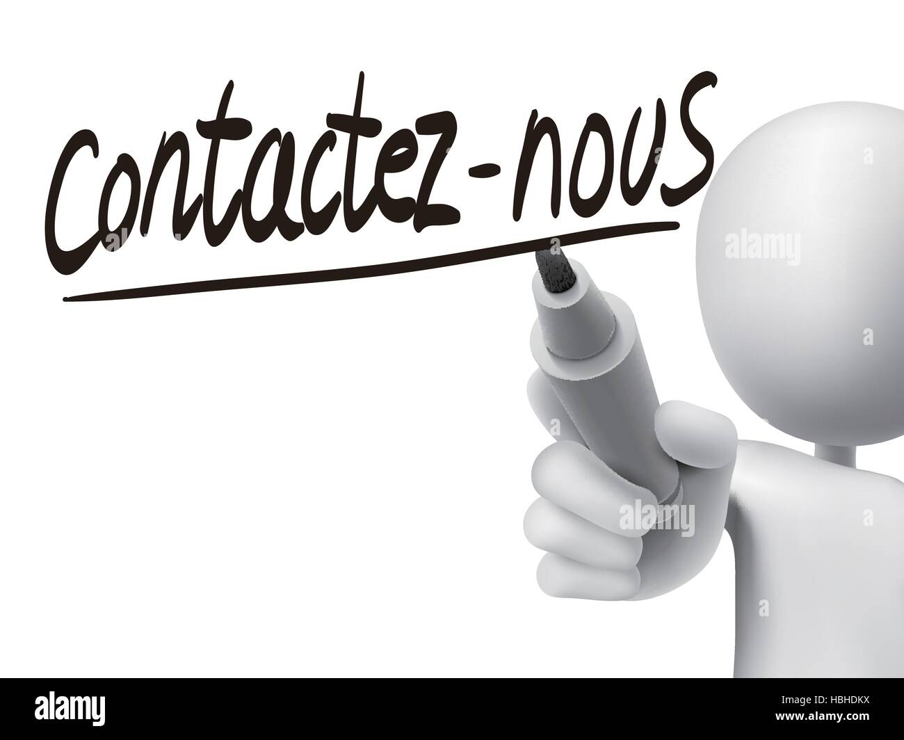 French words for Contact us written by 3d white man on a transparent