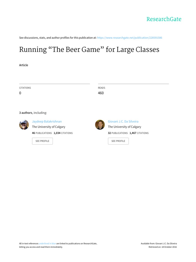 Running The Beer Game For Large Classes PDF Simulation Course