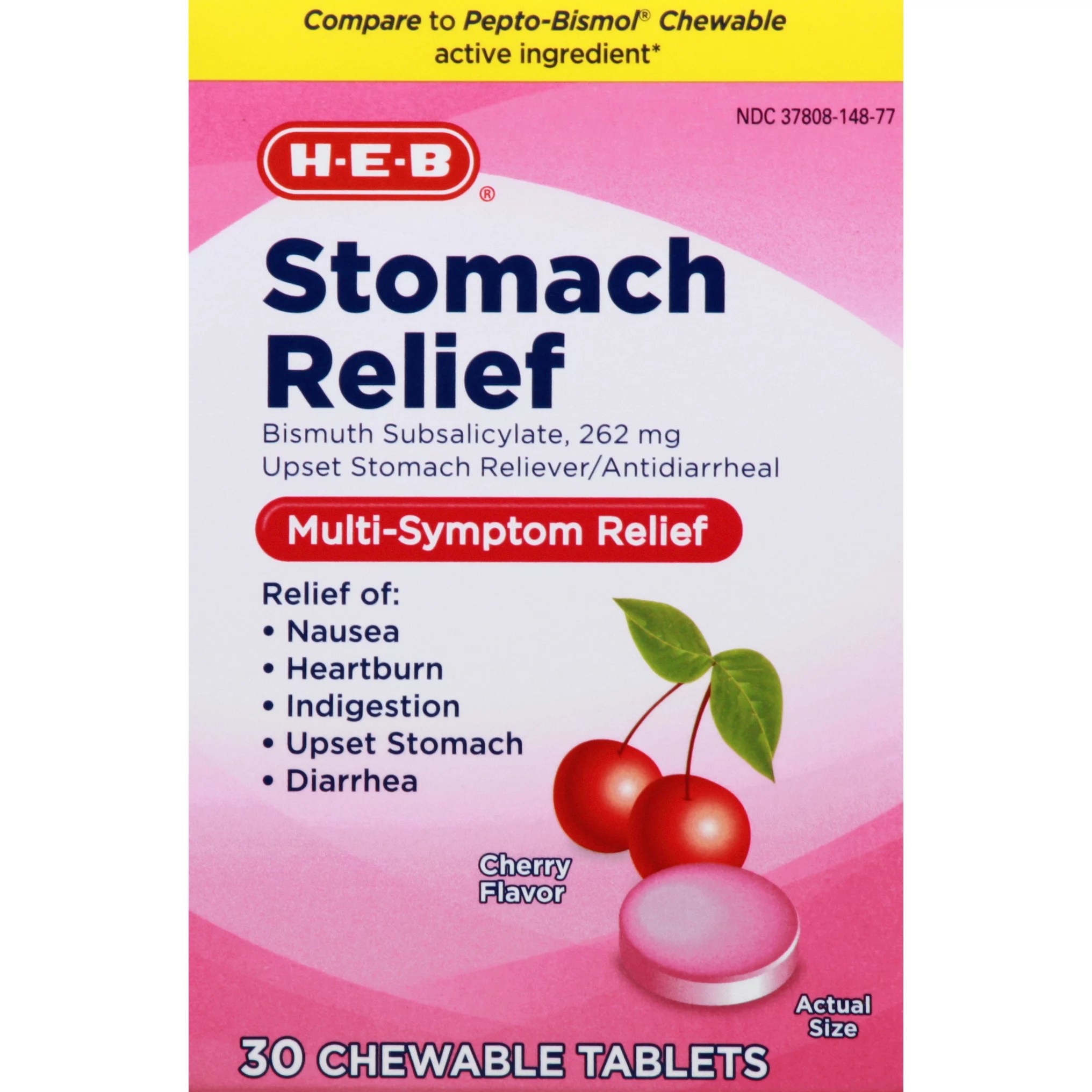 HEB Stomach Relief, MultiSymptom Relief, Cherry Flavored, Chewable
