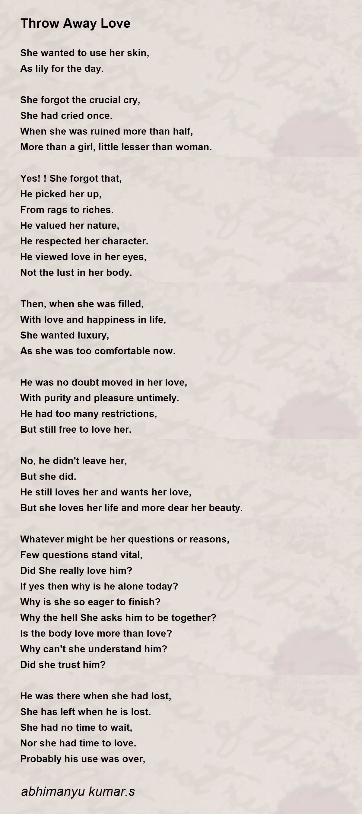 Throw Away Love Poem by abhimanyu kumar.s Poem Hunter