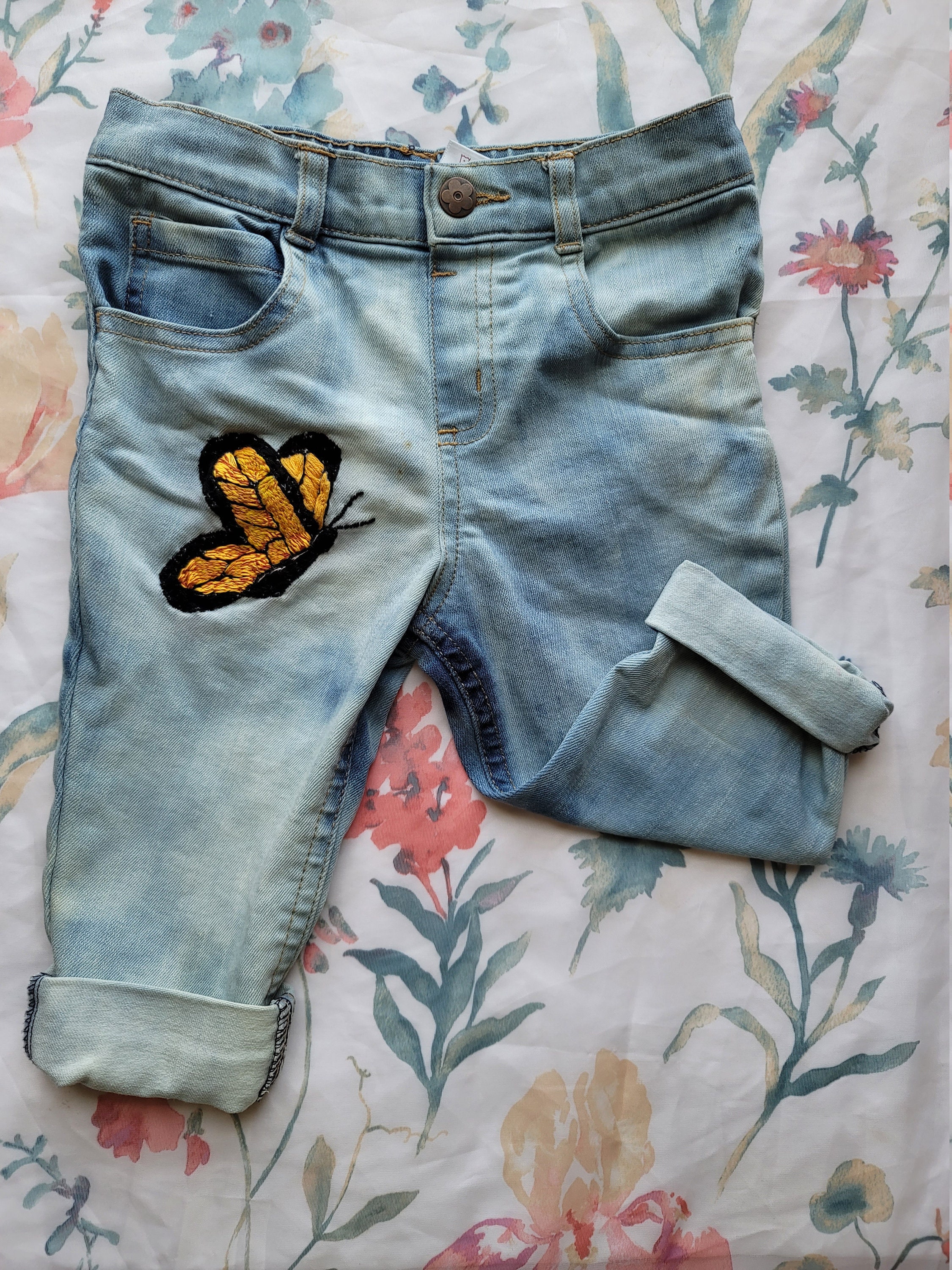 Youth Butterfly jeanssize 2 (fits youth size 10) Jeans diy, Designer Diy Butterfly Jeans Elevate your denim game and. Tag me in your photos of you decide to make them! Y'all know that i love to hand letter, doodle, and draw, so i have included the free printable these jeans were so easy to make! diy butterfly print jeans tutorial. They took a lot of time but it was worth it! . Diy Butterfly Jeans.