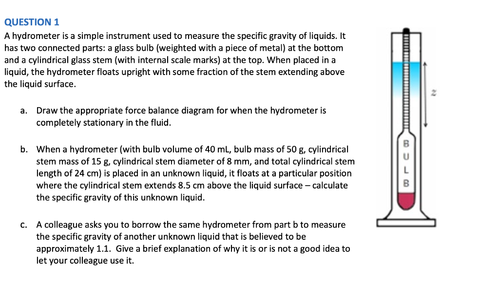 Solved QUESTION 1 A hydrometer is a simple instrument used