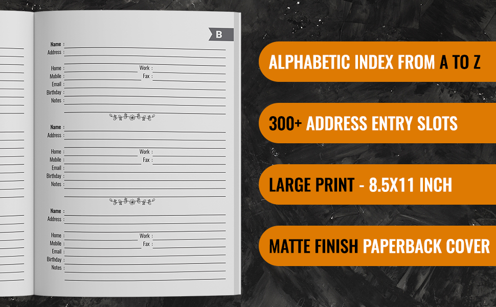 Address Book Large Print Address Book with Tabs, More than 300 Entry Spaces! Pretty Floral Amazon Address Book Large Print Large address book with alphabetical tabs | telephone address book | organizer notebook to keep track of names,. With alphabetical tabs, address/phone book for seniors, size 8,5 x 11'' almost a4, floral design, organizer with. Ideal for seniors makes it easy to stay on top of contact information for tradespeople,. Never worry about missing anyone's phone number and contact information. Amazon Address Book Large Print.