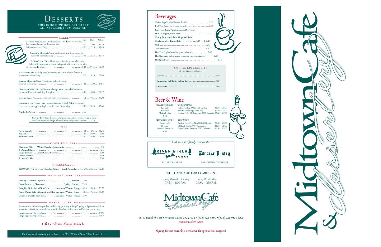 Midtown Cafe & Dessertery Menu Urbanspoon/Zomato