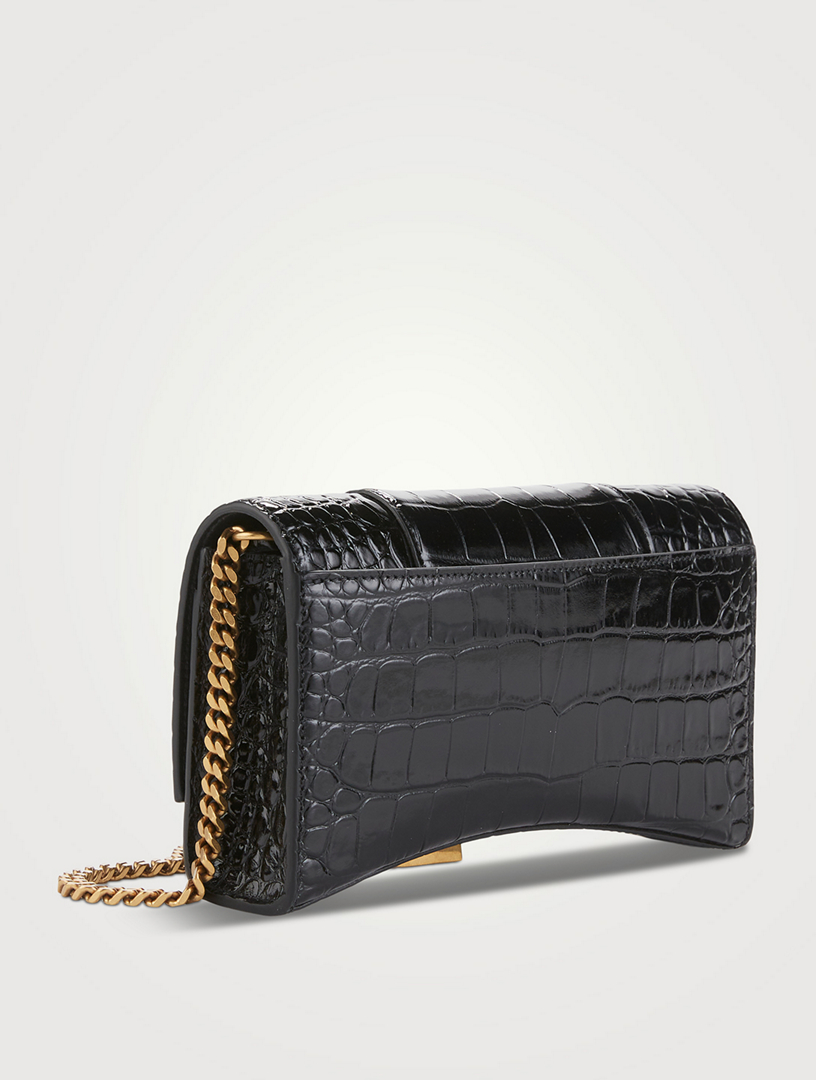 BALENCIAGA Hourglass CrocEmbossed Leather Chain Wallet Bag Holt
