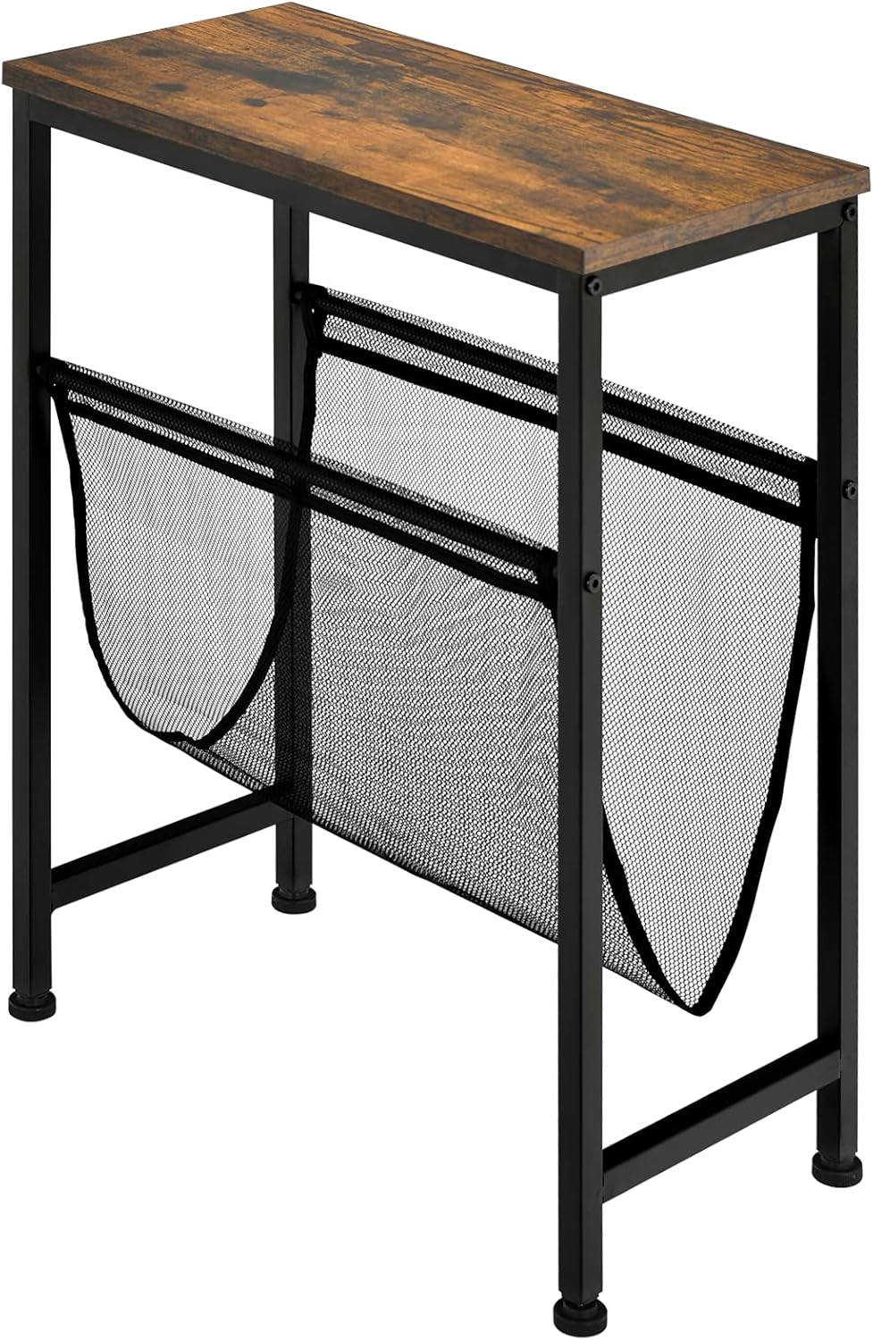Multigot Vintage End Table, Narrow Sofa Side Table with Mesh Magazine Holder, Industrial Bedside