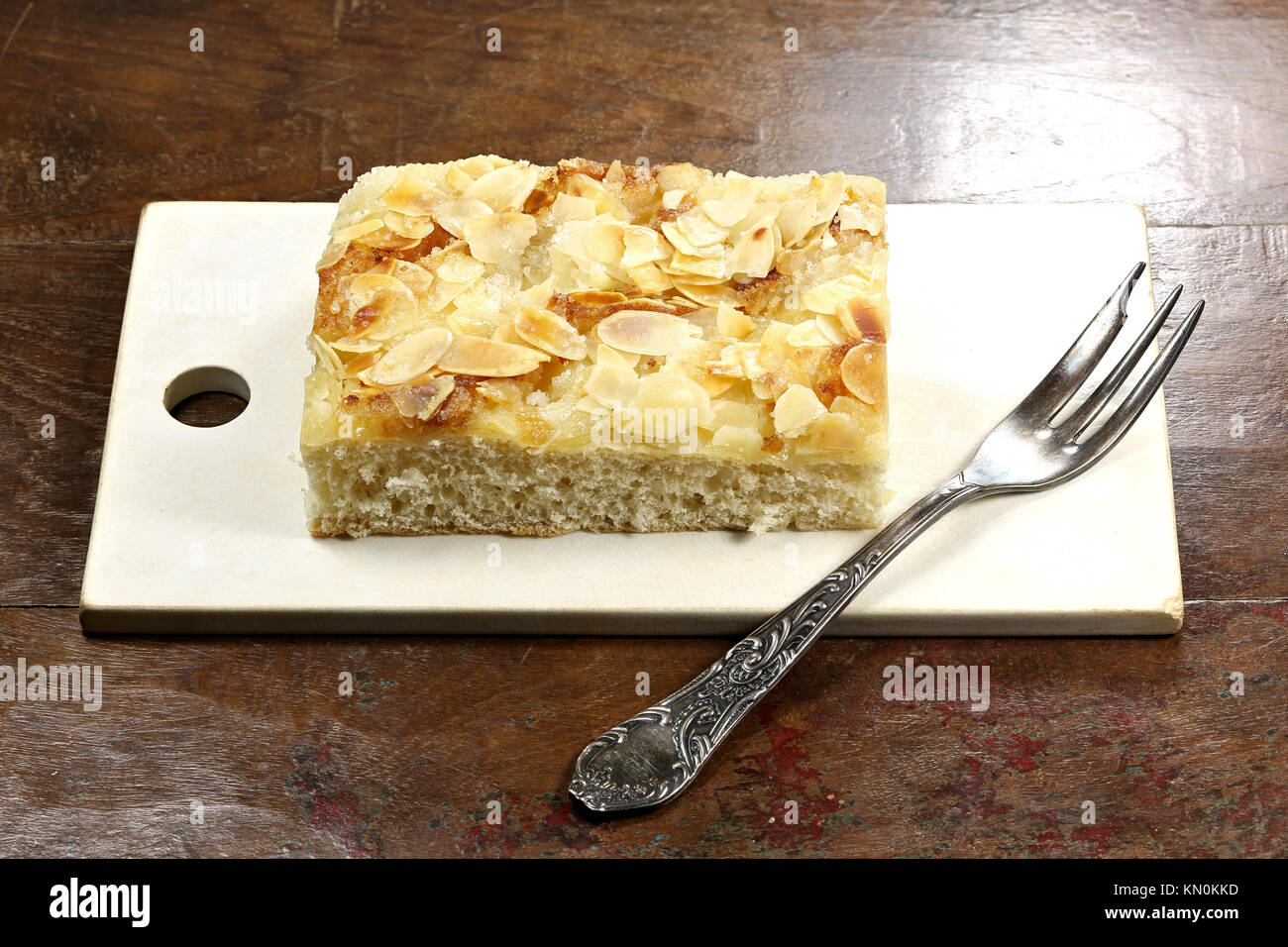 Traditional North German Butterkuchen (butter cake) on old cutting board Stock Photo Alamy