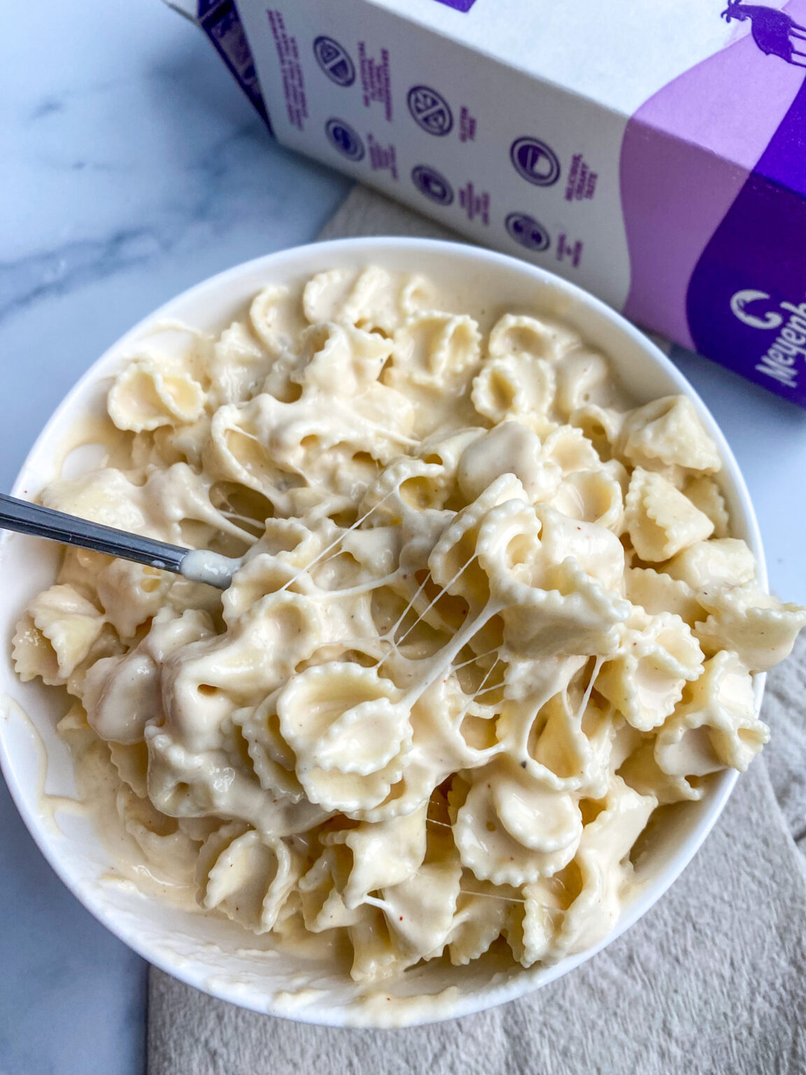 High Protein Vegan Mac and Cheese (Soy, Nut, and Gluten Free High Protein Mac & Cheese This high protein mac and cheese recipe screams comfort in every gooey bite. This high protein mac and cheese recipe comes together with seven simple ingredients, and yields 42 grams of protein per serving! This high protein cottage cheese mac and cheese is the ultimate comfort food lightened up! It has 44 grams of protein and only 8.5 g net. High Protein Mac & Cheese.