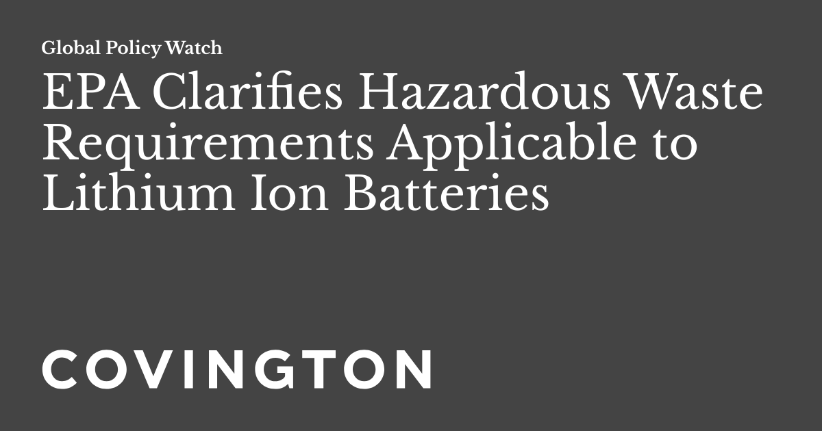 EPA Clarifies Hazardous Waste Requirements Applicable to Lithium Ion