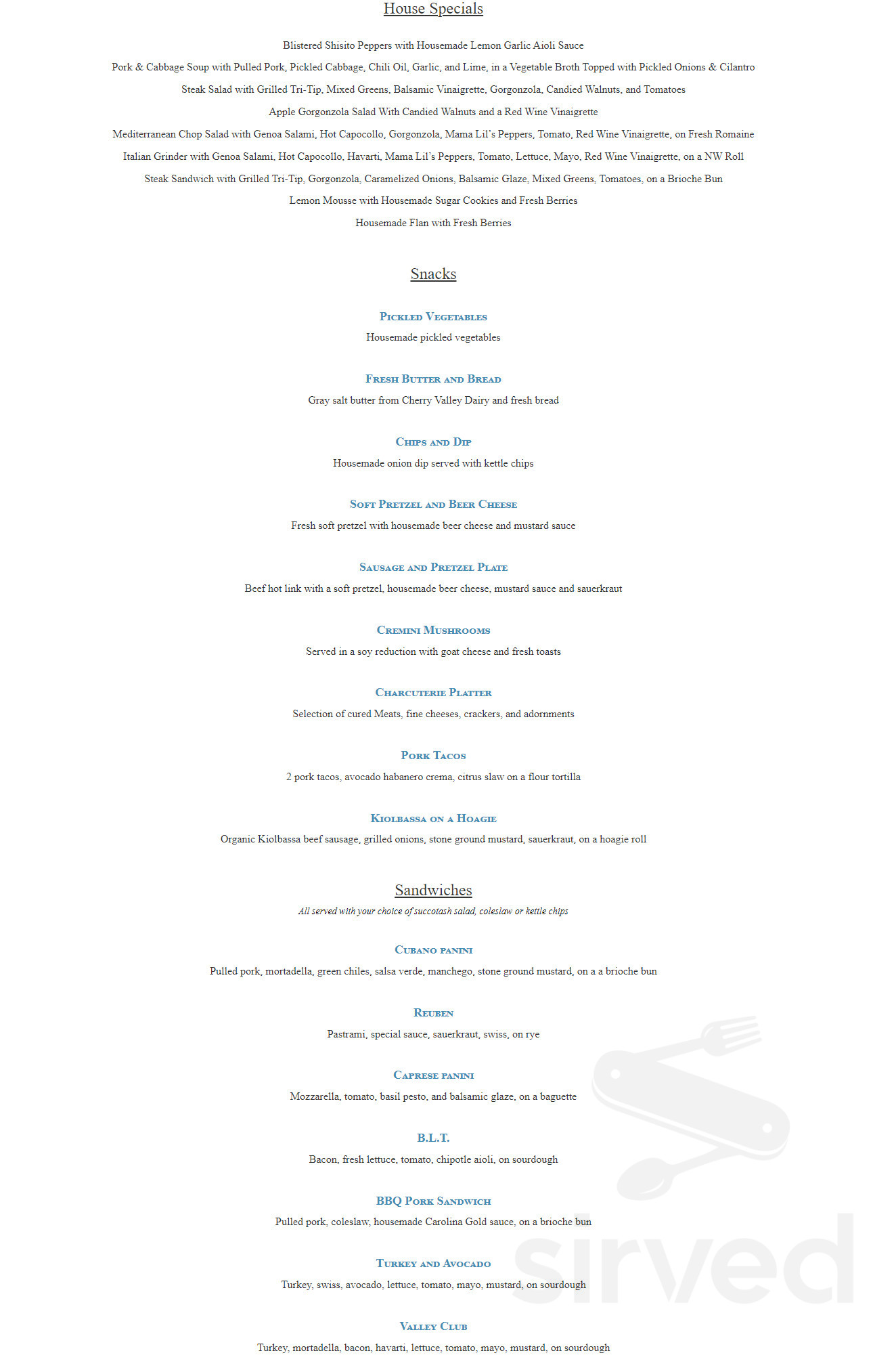 Valley House Brewing Co. menu in Duvall, Washington, USA