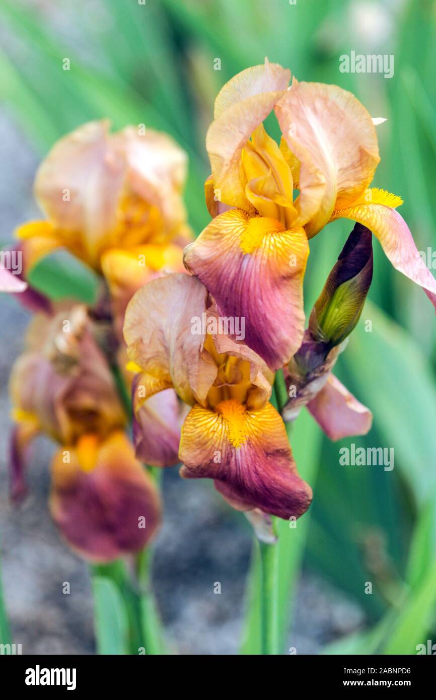 Orange iris "Hoosier Sunrise Stock Photo Alamy Irises Orange Reliable rebloomer in the dallas area. Schreiner's iris gardens grows high quality bearded and beardless iris rhizomes for your landscape design. Excellent customer service answers your iris growing questions. Purposely bred to be a border bearded iris with strong colors, sicilian orange surprisingly turned out as planned. The bearded iris (iris germanica) is beloved for its large, showy, fragrant flowers.. Irises Orange.