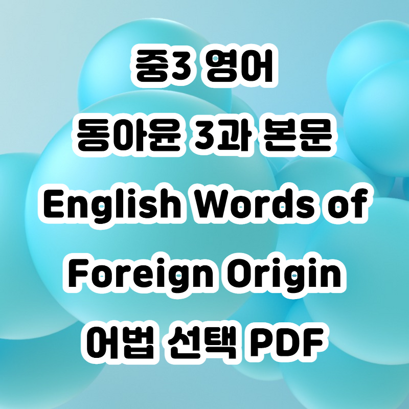 중3 영어 동아윤 3과 English Words of Foreign Origin 어법 선택 PDF