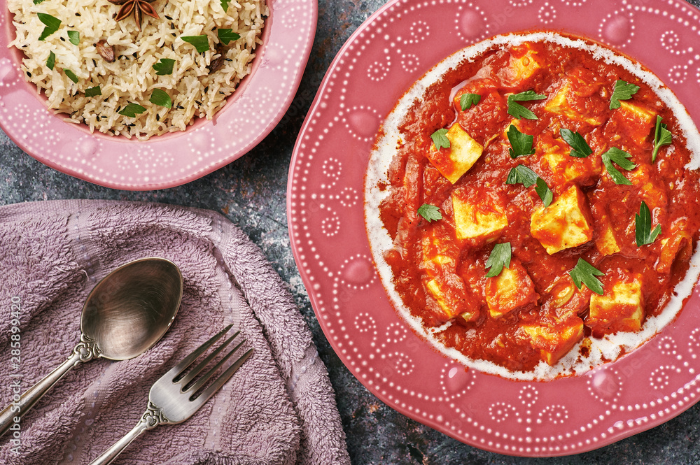 Paneer Makhani, Jeera Rice and paratha in pink plate on dark background Curry With Paneer Cheese Using the base recipe, you can make several variations of this delicious comfort food. A wonderful indian paneer curry recipe that is easy and quick to make. This nutritious, low in fat, easy vegetarian curry with paneer is a delicious, simple to make dish that comes together in under 30 minutes. It’s mild enough for the whole family to enjoy,. Curry With Paneer Cheese.
