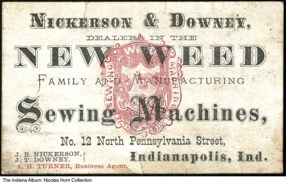 Nickerson and Downey sewing machine dealer business cards, Indianapolis